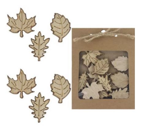 Sada obsahuje 12 drevených lístočkov, ktoré vám umožnia vytvoriť jedinečné a originálne kompozície.