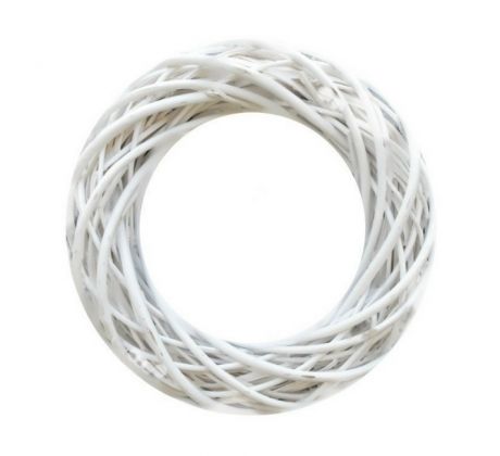 Prútený veniec. Farba biela. Vhodný ako dekorácia na zavesenie na dvere, okná alebo stenu. Vhodný na dekoračné účely v interiéri aj v exteriéri.