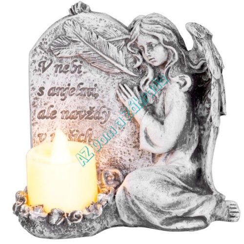 realisticky spracovaná keramická soška s anjelom a sviečkou