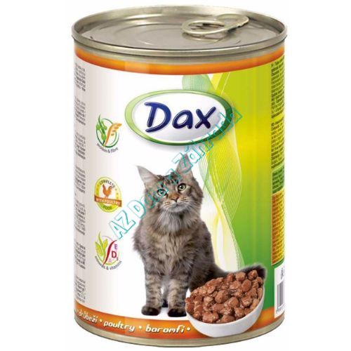 Dax kúsky v konzerve s hydinou je chutné a vyvážené krmivo pre mačky všetkých plemien. Lahodné kúsky mäsa v šťavnatej omáčke zabezpečia dostatok živín pre každodennú stravu.