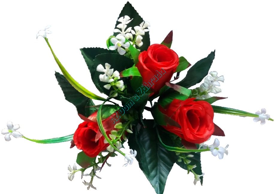 Umelá ruža červená puk s lístkami - vencovka je umelý kvet vhodný na aranžovanie a dekoráciu vencov a kytíc.