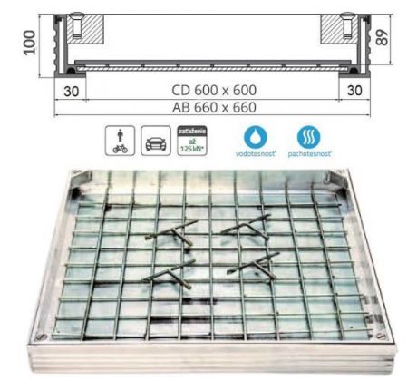 Poklop hliníkový pre zadláždenie ALUSOL Light H100 - 600x600