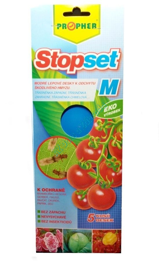 STOPSET M je špecializovaný lepový lapač určený na odchyt strapiek. Vďaka modrej farbe, ktorá pripomína kvety, efektívne lákajú strapky, ktoré sa prilepia na silne lepivý povrch dosky. Pravidelným používaním dosiek dokážete účinne znížiť výskyt škodcov a chrániť tak okrasné rastliny, zeleninu a hľuzy pred poškodením.