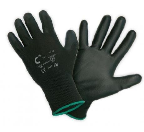 Rukavice BUCK Black sú vyrobené z jemného nylonu s dlaňou a prstami pokrytými tenkou čiernou vrstvou polyuretánu. Veľkosť rukavíc je stála.