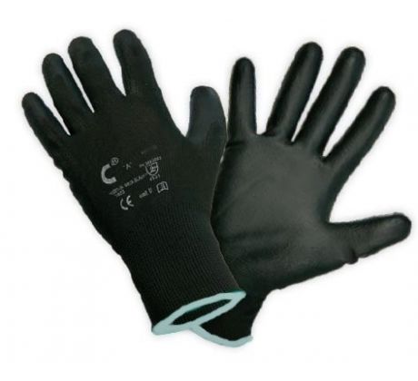 Rukavice BUCK Black sú vyrobené z jemného nylonu s dlaňou a prstami pokrytými tenkou čiernou vrstvou polyuretánu. Veľkosť rukavíc je stála.