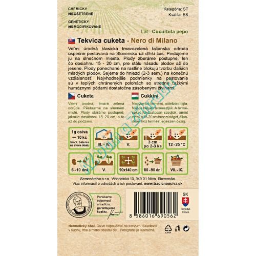 Veľmi úrodná klasická tmavozelená talianska odroda úspešne pestovaná na Slovensku už dlhší čas. Pestujeme ju na slnečnom mieste. Plody zberáme postupne, len čo dosiahnu 15 – 20 cm, pre stálu násadu plodov až do jesene. Plody ponechané na rastline blokujú tvorbu ďalších mladých plodov. Sejeme do hniezd (2-3 sem.) na konečnú vzdialenosť. Najvhodnejšie podmienky na pestovanie sú v teplých chránených polohách so stredne ťažkými humóznymi pôdami dostatočne zásobenými živinami.
