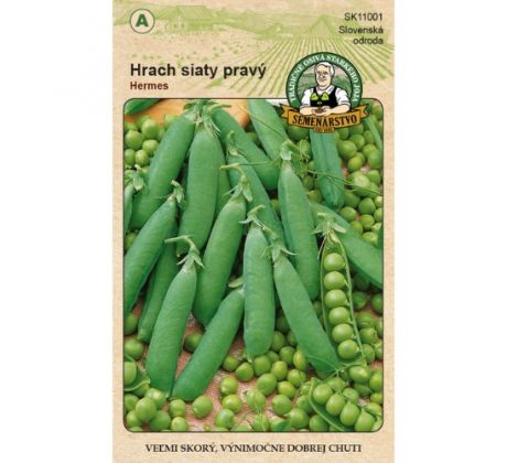 Veľmi skorá slovenská odroda nižšieho vzrastu. Tmavozelené kvalitné zrno má výnimočne dobrú chuť. Dĺžka struku je približne 7,5 cm s priemerným počtom semien 7 ks. Odporúča sa hlavne na priamy konzum, ale je vhodná aj na spracovanie. Hrach siaty je všeobecne nenáročný na pôdu, no odrode Hermes sa najlepšie darí na úrodných pôdach s dostatkom vlahy. Po vzídení udržujeme porast bez buriny. Hrášok, predovšetkým mladý a čerstvý, je bohatým zdrojom antioxidantov.