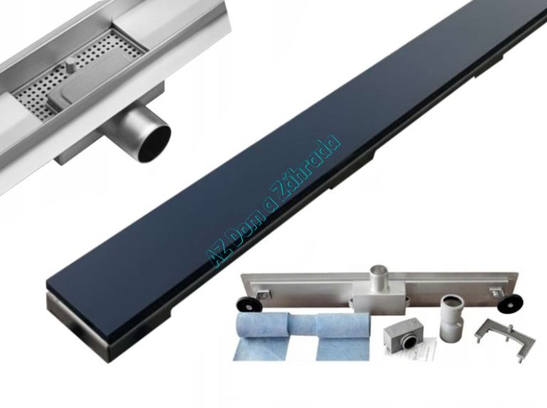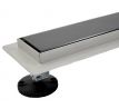 Podlahový kúpeľňový žľab s krycím skleneným roštom v čiernom prevedení. Dizajn podlahového žľabu je založený na minimalizme a elegancii a zapadá hlavne do usporiadania moderných kúpeľní.