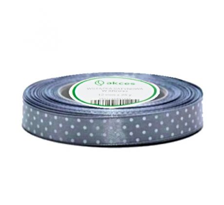 Stuha saténová šedomodrá s bielymi bodkami 1,2 cm / 1 m