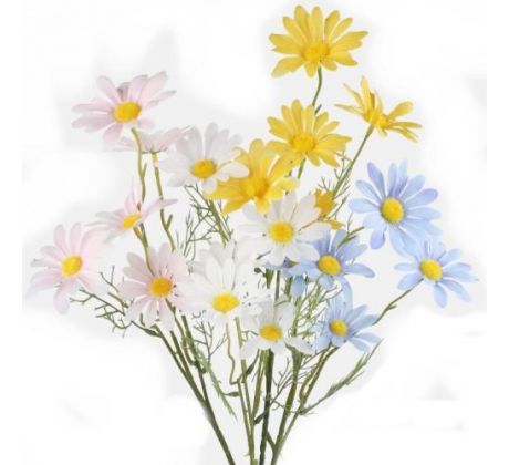 Umelá sedmokráska v modrej farbe je doplnkom pre vaše aranžérske dekorácie. So svojimi 5 kvietkami a s dĺžkou 52 cm je ideálna na ozdobu menších aj väčších váz alebo na tvorbu kvetinových aranžmánov.