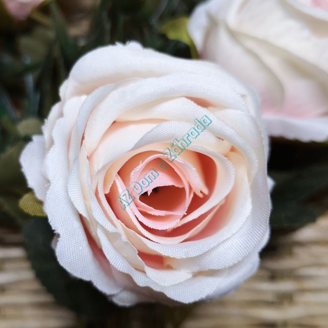Umelá kytička ružičiek v krásnej krémovo lososovej farbe má výšku 30 cm. Kvety sú vyrobené z hodvábnej textílie. Počet ružičiek je 6 s priemerom hlavičky ruže 5 cm.