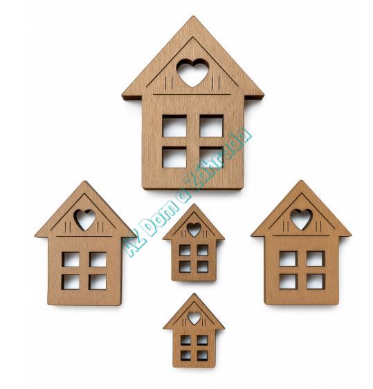 Originálna sada 5 drevených domčekov s vyrezaným srdiečkom a okienkami je ideálna na dekorovanie, tvorenie či aranžovanie. Domčeky sú vyrobené z kvalitného prírodného dreva s hrúbkou 5 mm, precízne vyrezané laserom s jemnými detailmi.