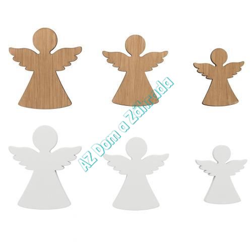Sada obsahuje 6 drevených anjelikov v troch rôznych veľkostiach: