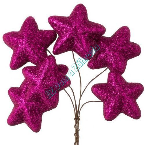 Hviezdičky fuksiové glitrové zväzok 6 ks
