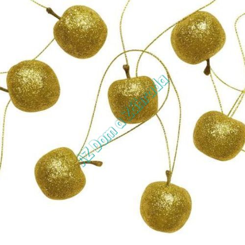 Jabĺčka zlaté s glitrami na zavesenie 2,5 cm / 18 ks