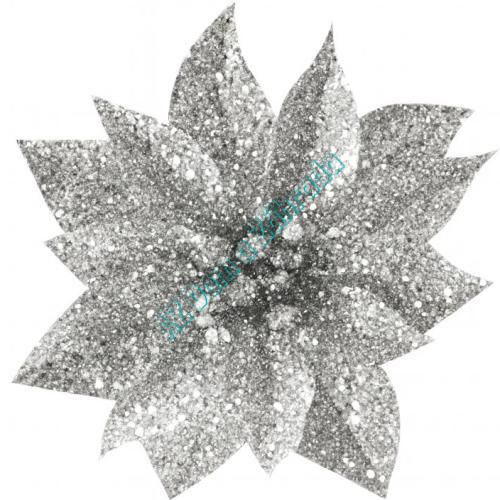 Úvod Vianočný tovarKvet gliter so štipcom strieborný 9 cm / 1 ks