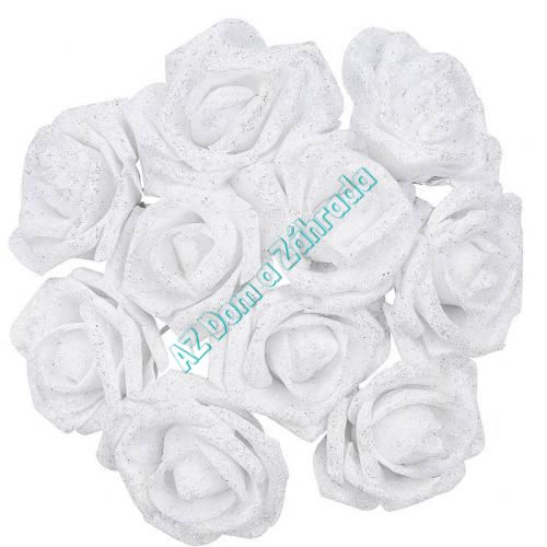 Ružičky biele glitrové 3,5 cm / 12 ks