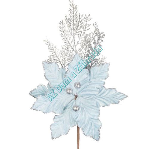 Vianočná vetvička s kvetom poinsettia – modro-strieborná (27 cm)