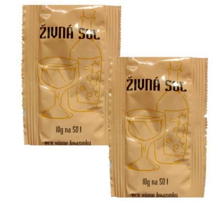 Živná soľ je prípravok určený na stimuláciu rastu a rozmnožovania kvasiniek v mušte, čo je dôležité pre správne a efektívne kvasenie. Je to komplexné činidlo, ktoré obsahuje fosforečnany dusíka v amoniakovej forme a thiamín (vitamín B1). Tieto zložky sú zodpovedné za aktiváciu fermentačného procesu a naštartovanie kvasenia.